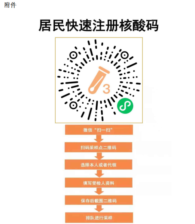(一)个人信息登记。为提高效率,此步骤请大家在进场排队前完成。此次核酸检测统一使用“桂核酸”微信小程序进行信息登记,请参加核酸检测的师生用手机微信扫码登录“桂核酸”小程序,并完成信息登记工作(见附件)。如有老人、小朋友不便填写的,可由家属帮助填写登记。信息登记成功后将会生成个人唯一的“桂核酸检测码”(建议手机截图保存,以便调出使用)。