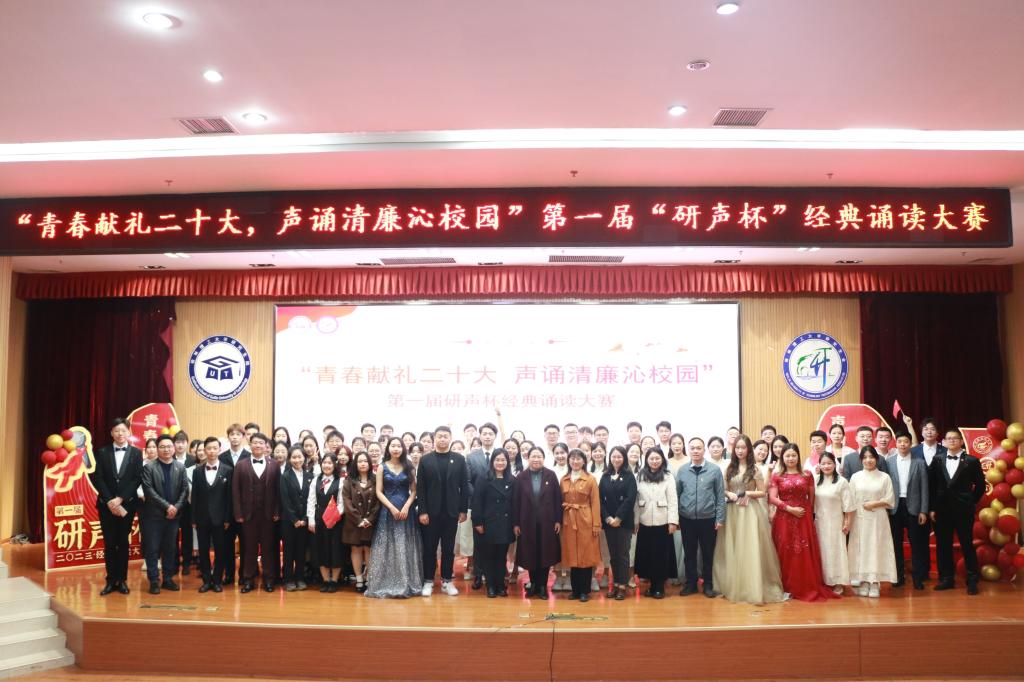 为深入学习贯彻党的二十大精神,传承和弘扬中华优秀传统文化,培养研究生爱国主义情怀,推进清廉学校建设,弘扬树立诚信学风,展现新时代桂工人积极向上、踔厉奋发、上下求索的青春风貌,3月28日上午,beat365第一届“研声杯”研究生经典诵读大赛决赛在雁山校区图书馆报告厅圆满落幕。校团委副书记莫媛、党委研究生工作部副部长江玲,相关职能部门、二级学院教师担任比赛评委。决赛共有11支队伍参加,100余名研究生到场观摩。比赛还通过线上形式进行全程同步直播。
