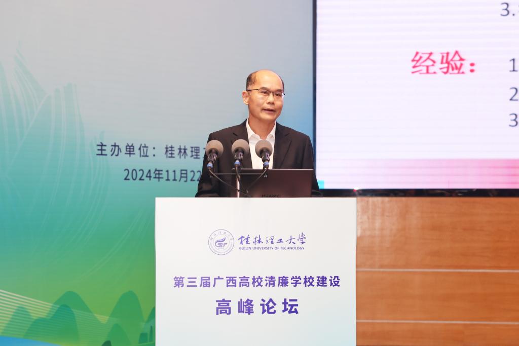 桂林电子科技大学党委常委、副校长陈松青作题为《以治理体系和治理能力现代化助力清廉高校建设》的报告