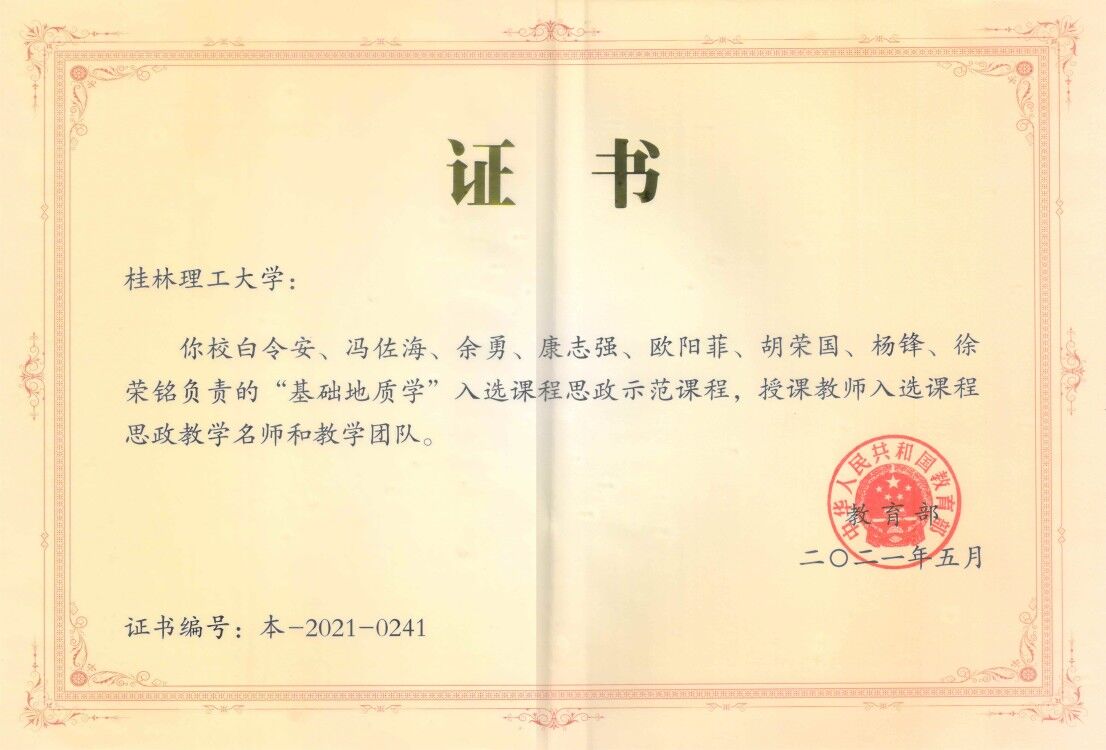 始终坚持立德树人,人才自主培养成效显著。聚焦五育并举,着力培养堪当民族复兴大任时代新人,学院获批全区高校“三全育人”综合改革示范院系。坚持改革赋能,获批教育部基础地质首批国家级实验教学示范中心、国家级应用型人才培养模式创新实验区、教育部“新工科”研究与实践项目等国家级教学平台;资源勘查工程、勘查技术与工程、地球化学等专业被认定为国家一流本科专业;资源勘查工程、勘查技术与工程被认定为国家特色专业并通过教育部工程教育认证。《地球科学概论》《矿床矿相学》《基础地质学》等课程被认定为国家一流课程;获批广西示范性研究生联合培养基地、自治区级虚拟仿真实验教学中心等省部级教学平台;获自治区级教学成果奖特等奖2项、一等奖5项;地质资源与地质工程入选广西一流学科。狠抓学风建设,学生近年考研录取率年均30%以上,毕业生初次毕业去向落实率保持在90%以上,为地方经济社会高质量发展作出了应有贡献。