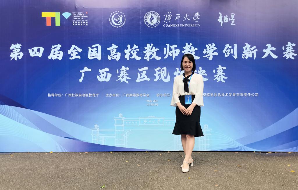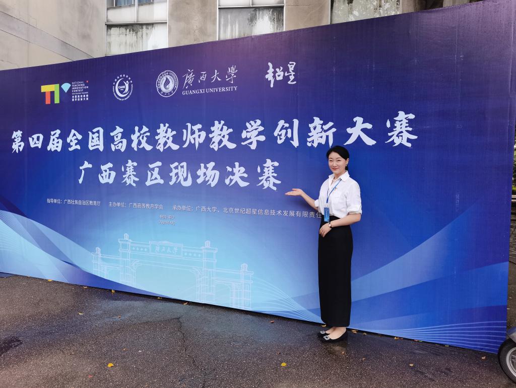 李莎,外国语学院英语教研室教师,荣获第四届高等学校教师教学创新大赛校级一等奖、广西一等奖、全国二等奖,全国高等院校英语教师教学基本功大赛广西一等奖、全国一等奖,全国高等学校外语课程思政教学比赛广西一等奖、全国二等奖,全国信息化大赛二等奖,全国外语微课大赛三等奖等国家级奖项五项;“外教社”杯高校外语教学大赛、“外研社”教学之星大赛、广西教育教学信息化大赛等省部级教学比赛奖项六项。