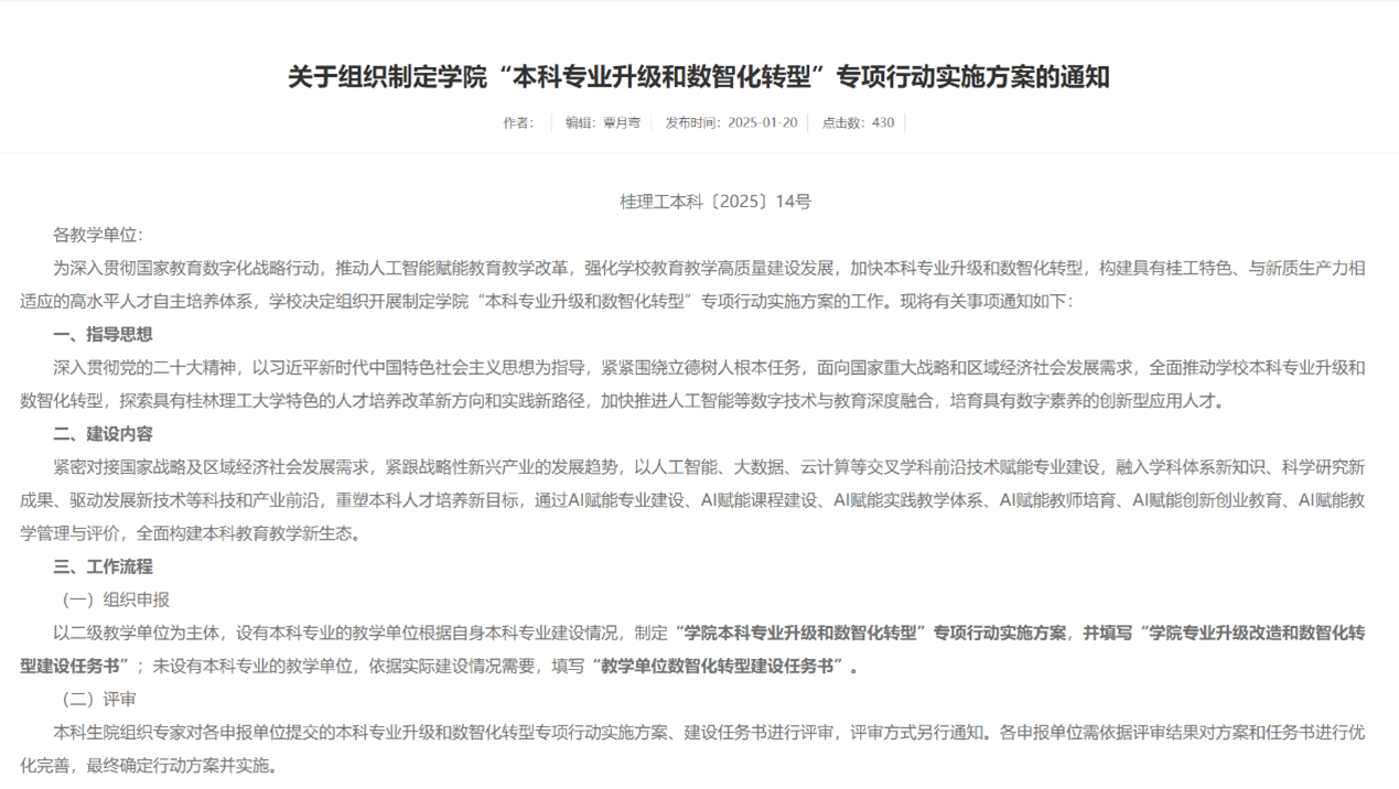 组织各教学单位编制《“本科专业升级与数智化转型”专项行动实施方案》