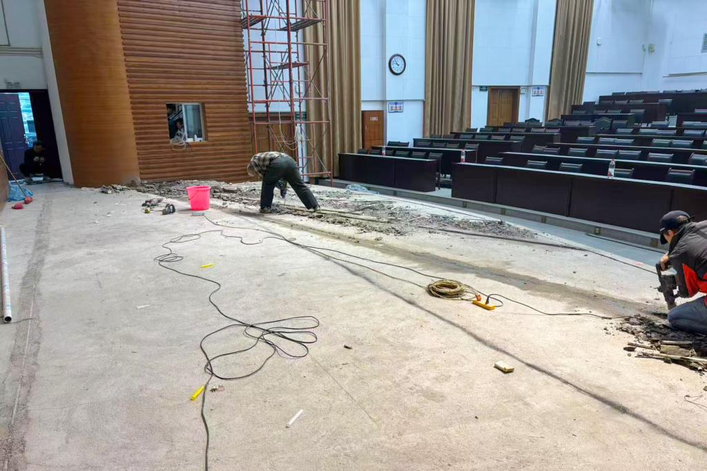 屏风校区图书馆报告厅会议音响系统升级改造施工现场