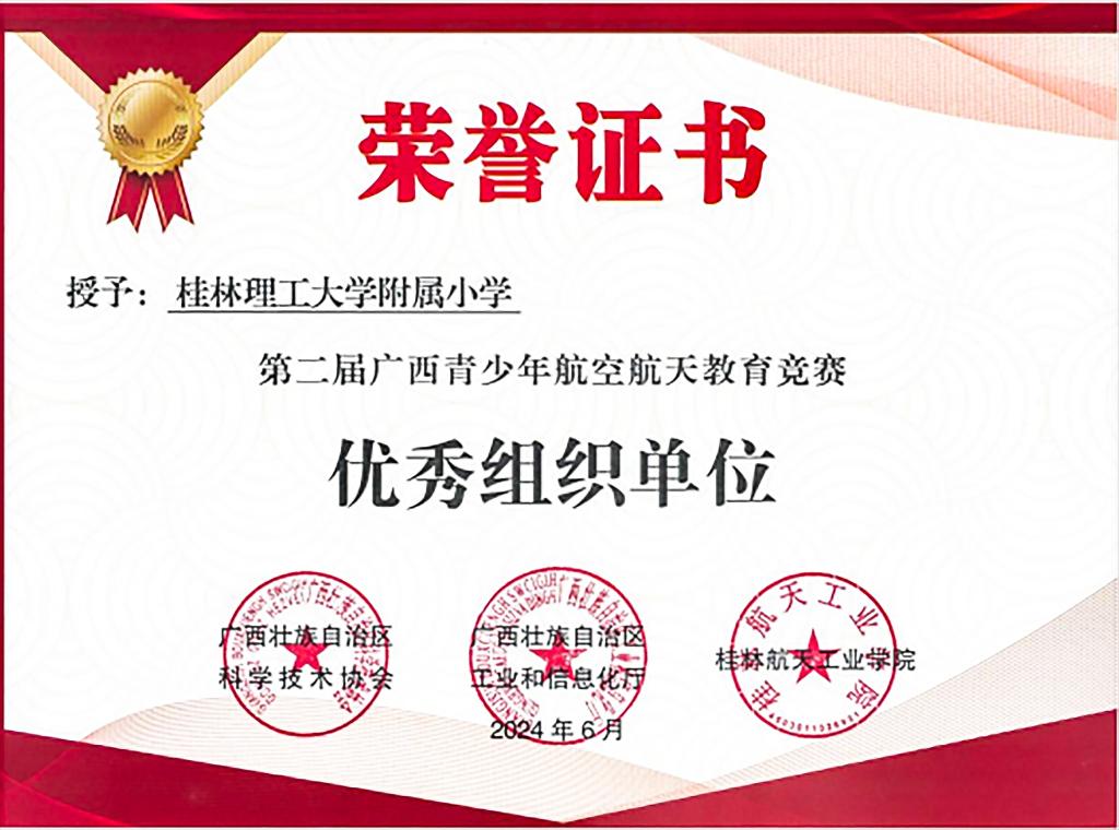荣获第二届广西青少年航空航天教育竞赛优秀组织单位