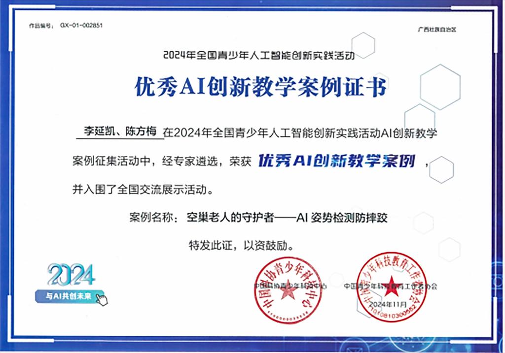 团队教师教学案例荣获2024年全国青少年人工智能创新实践活动优秀AI创新教学案例