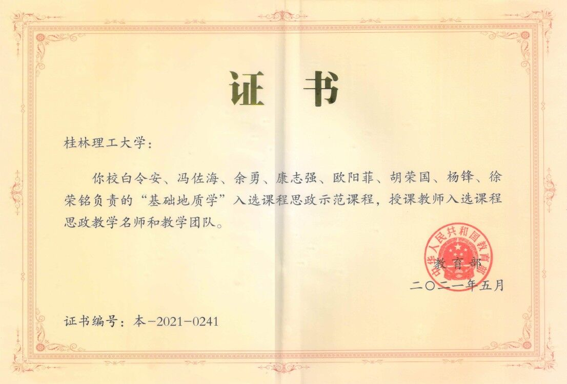 学院“基础地质学”课程入选国家级课程思政示范课程,授课教师入选课程思政教学名师和教学团队