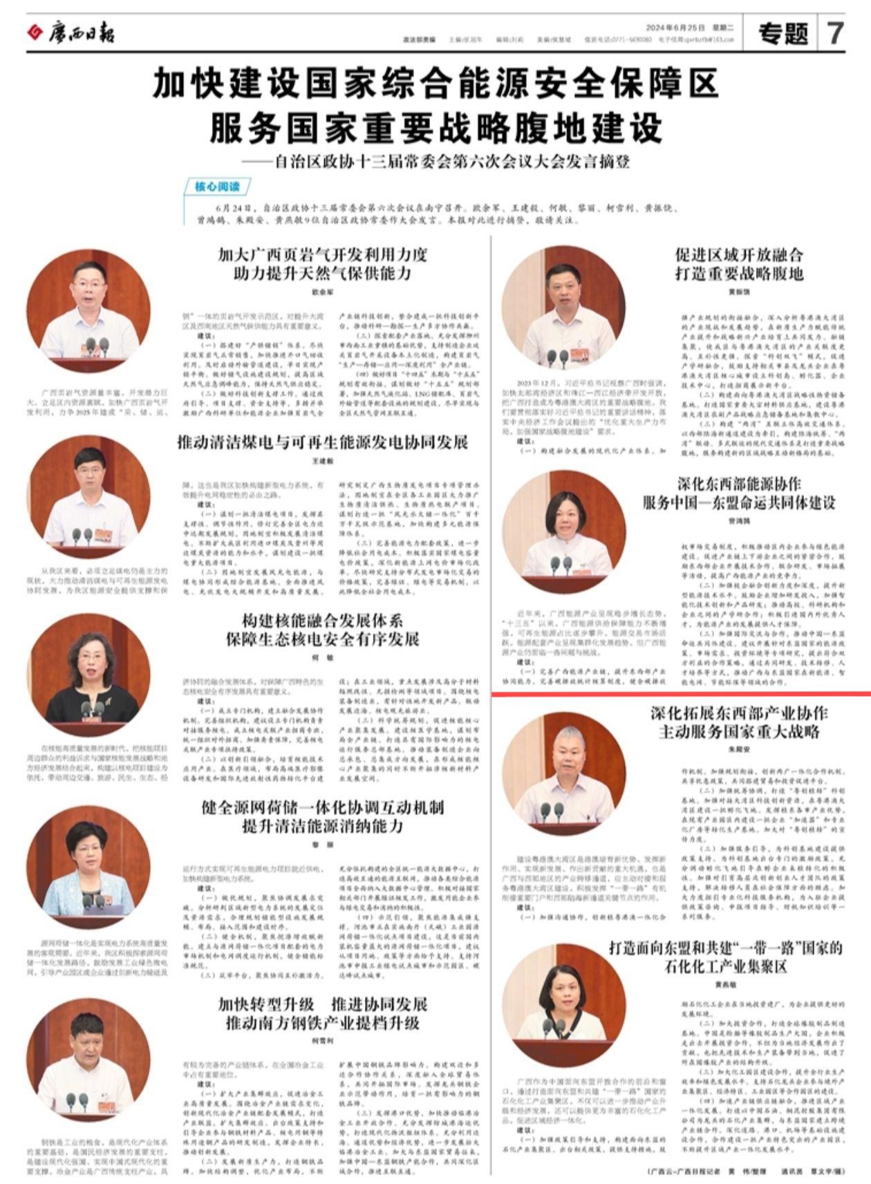 曾鸿鹄教授在自治区政协十三届常委会第六次会议上的建言献策在《广西日报》刊发