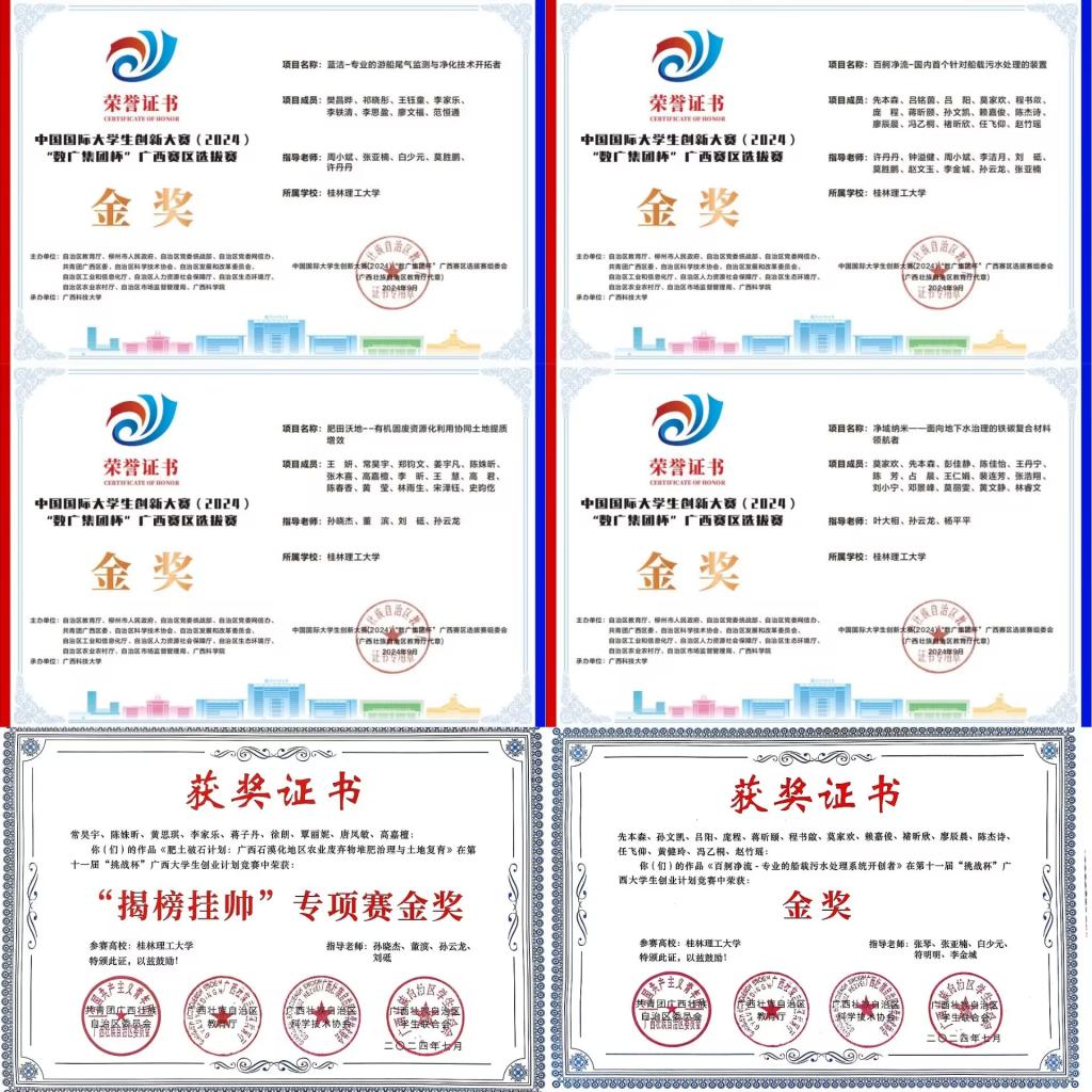 获得中国国际大学生创新大赛(2024)、“挑战杯”广西赛区选拔赛金奖等6项