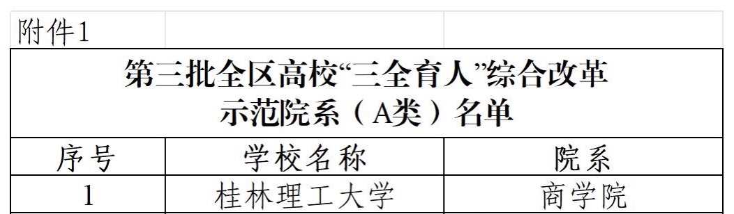 学院入选第三批全区高校“三全育人”综合改革示范院系(A类)