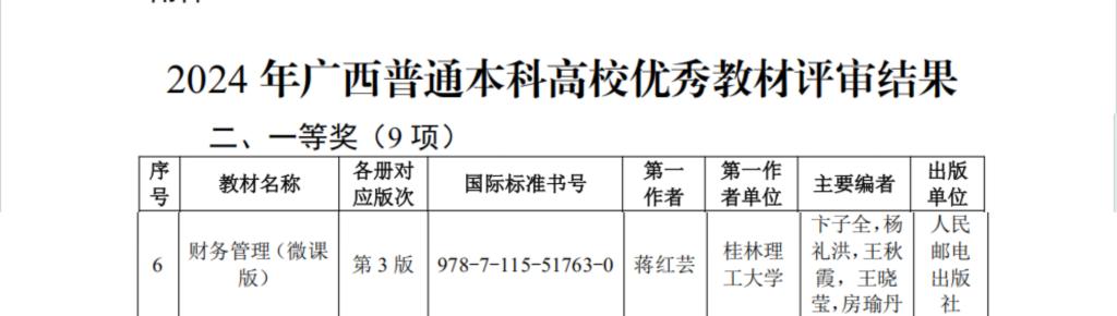 荣获广西普通本科高校优秀教材奖一等奖