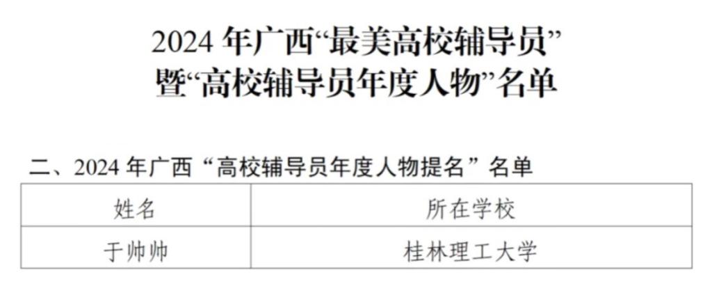 学院辅导员于帅帅老师入选2024年广西“高校辅导员年度人物提名”名单