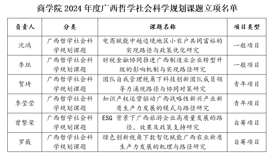学院新增广西哲学社会科学规划课题立项