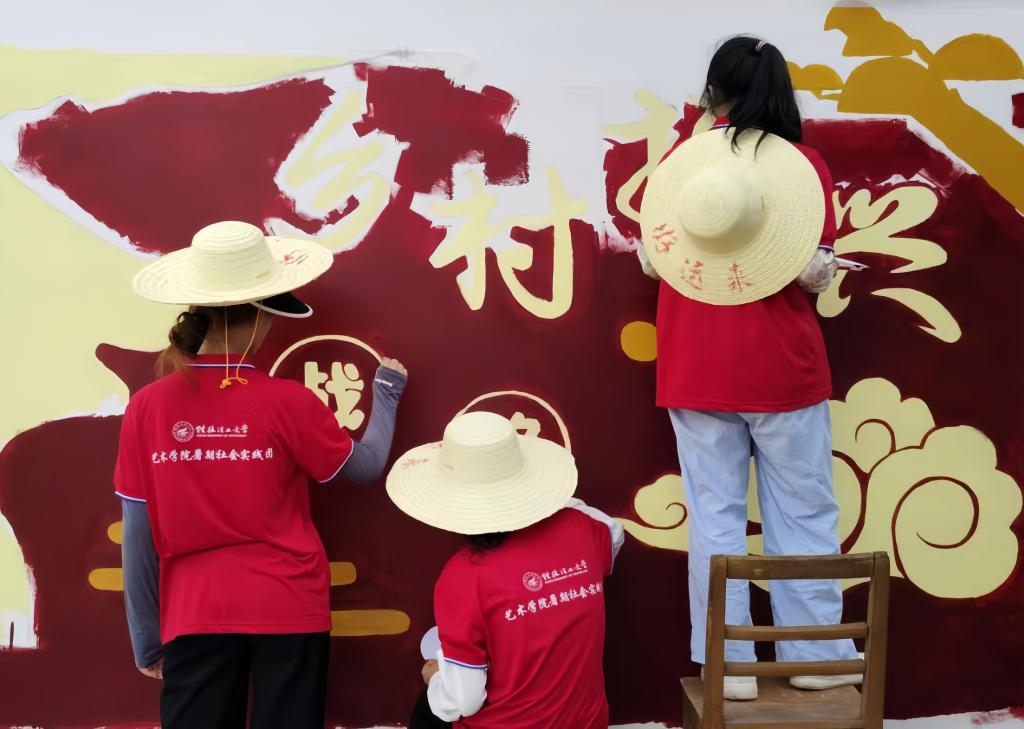 服务“大美桂工”建设彰显新风貌,助力建成廉政文化园、民族团结园、科学匠心园、体育文化园、雁祥花廊。担当美育职责展现新作为,举办2024发现雁山广西美术作品展暨第四届广西漆画作品展、服装发布会、依法治校主题艺术作品展等系列高水平展览和“华彩传承·艺心筑梦”主题沉浸式体验活动,持续推动以美育人、以美培元。服务乡村振兴迈出新步伐,为帮扶村设计村徽、农产品商标、村集体产业产品包装,捐赠助学金和廉洁艺术作品、衣物一批,绘制文化长廊和墙绘200多平方米。