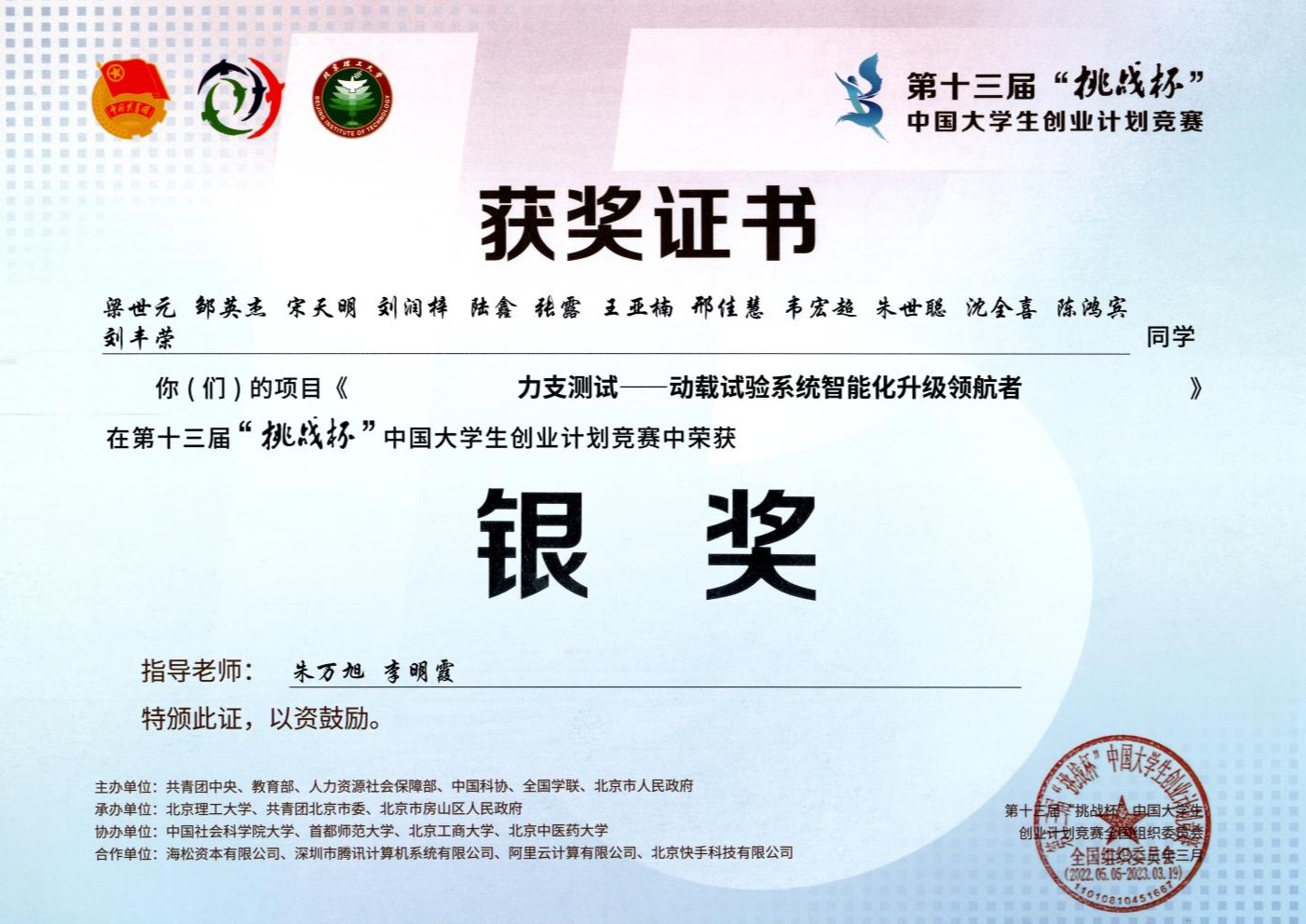 指导学生参加第十三届“挑战杯”中国大学生创业计划竞赛获全国银奖