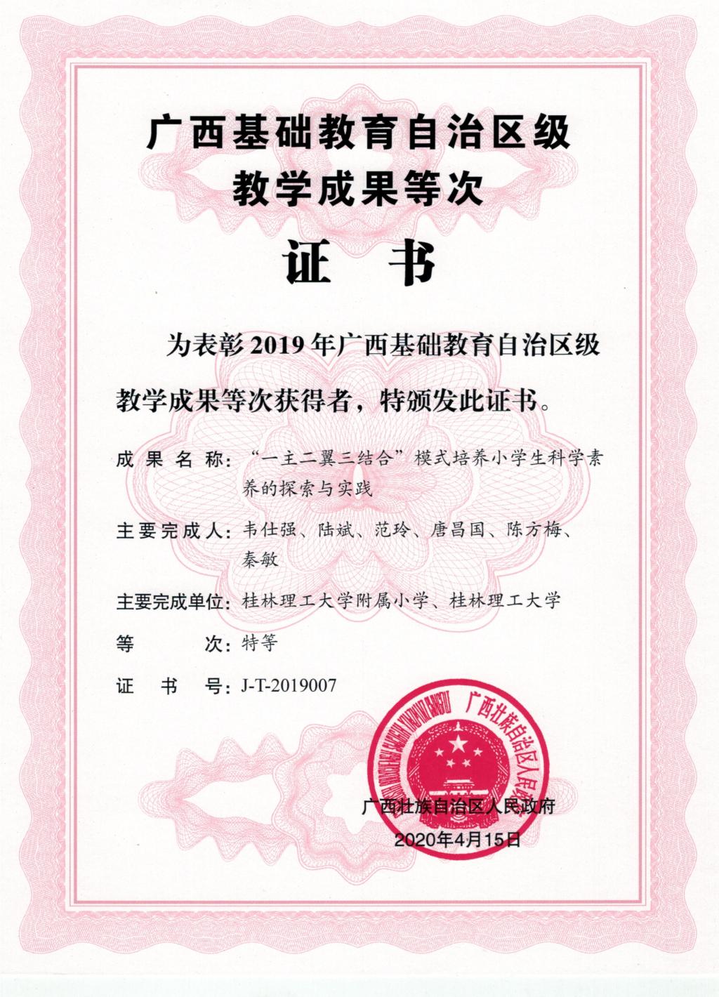 团队成果获广西基础教育教学成果特等奖