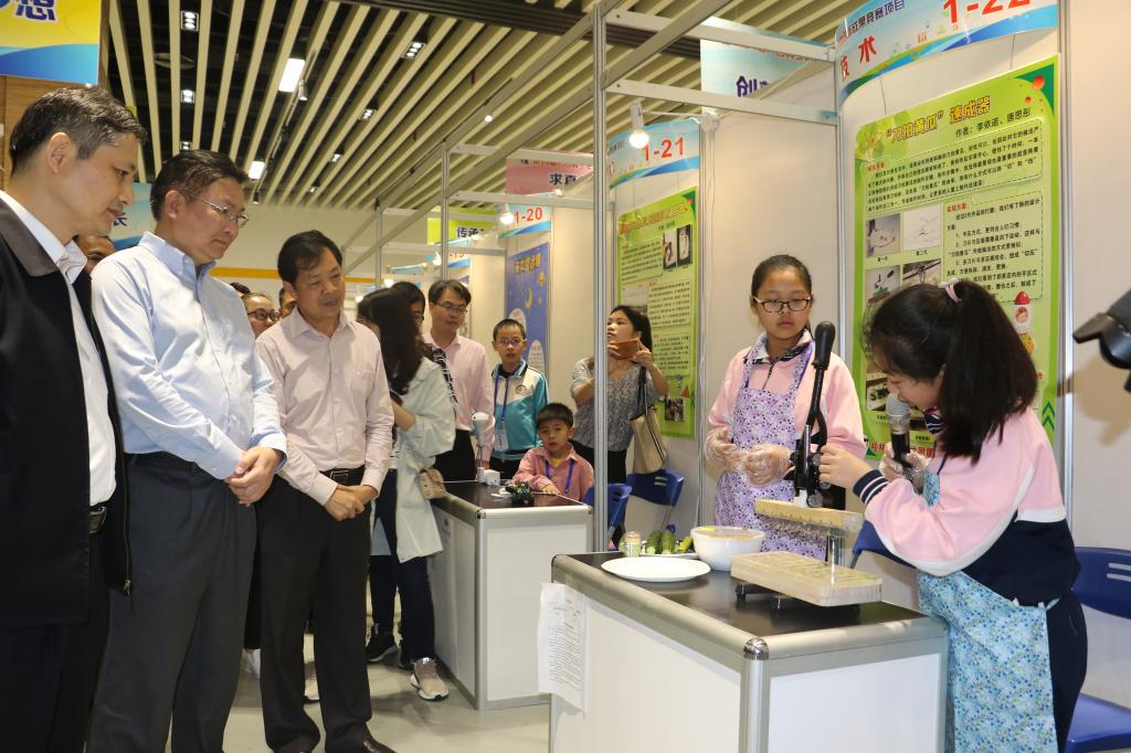 李依诺同学为广西政协副主席黄日波讲解创新作品