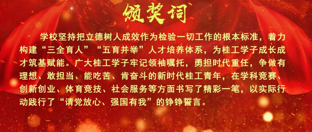 又一年出彩桂工,又一年非凡历程。为大力表彰在深入学习贯彻习近平新时代中国特色社会主义思想,全面贯彻落实党的二十大精神,推动学校党的建设和各项事业加快发展高质量发展中涌现出来的先进集体和先进个人,进一步激励全体桂工人深入贯彻落实习近平总书记对广西重大方略要求,解放思想、创新求变,乘势而上、开拓奋进,为建设教育强国、科技强国、人才强国,奋力谱写中国式现代化广西篇章作出新的更大贡献,学校开展2023年“出彩桂工·年度致敬”评选表彰活动。自活动开展以来,受到全校师生的广泛关注和热烈响应,经过推荐、审核和遴选,最终选取了5项年度致敬事件、4个年度致敬团队和5位年度致敬人物。