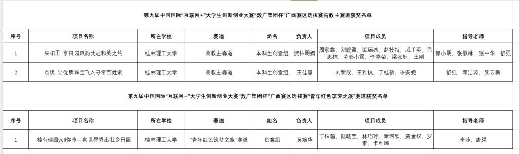 在第九届中国国际“互联网+”大学生创新创业大赛广西赛区选拔赛中获铜奖3项