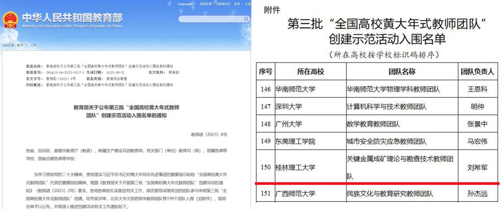 beat365关键金属成矿理论与勘查技术教师团队荣获第三批全国高校黄大年式教师团队称号