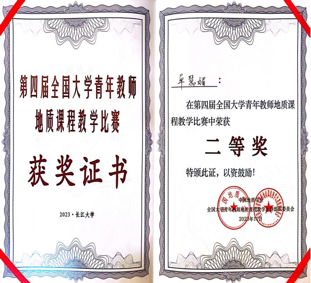 单慧媚老师荣获全国大学青年教师地质课程教学比赛二等奖