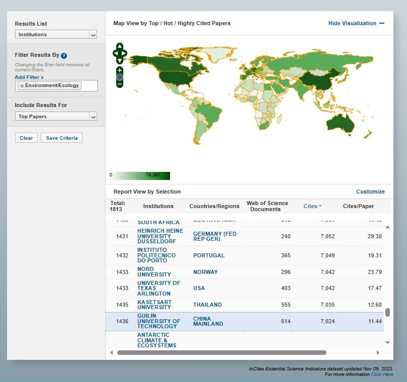 环境生态学进入ESI世界学科排名前1%