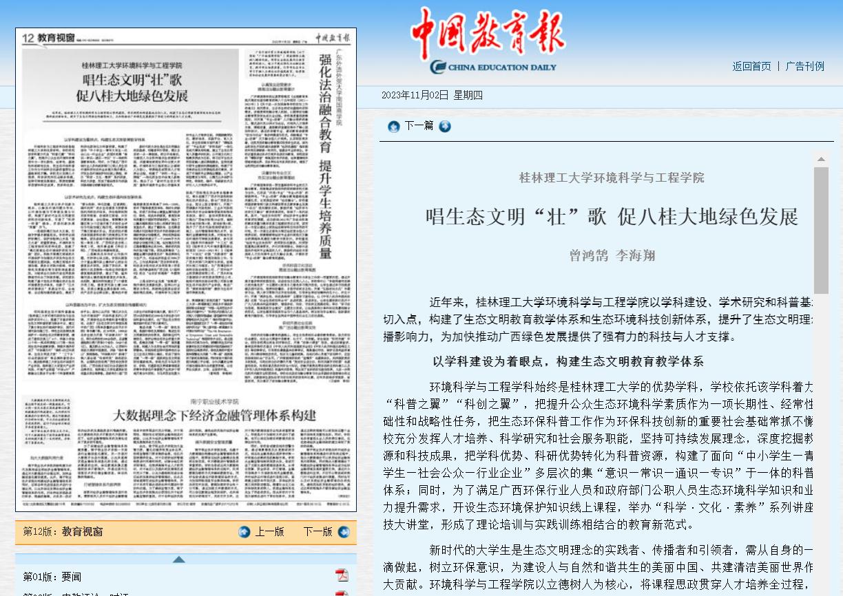 中国教育报报道我院构建生态文明教育教学体系相关做法
