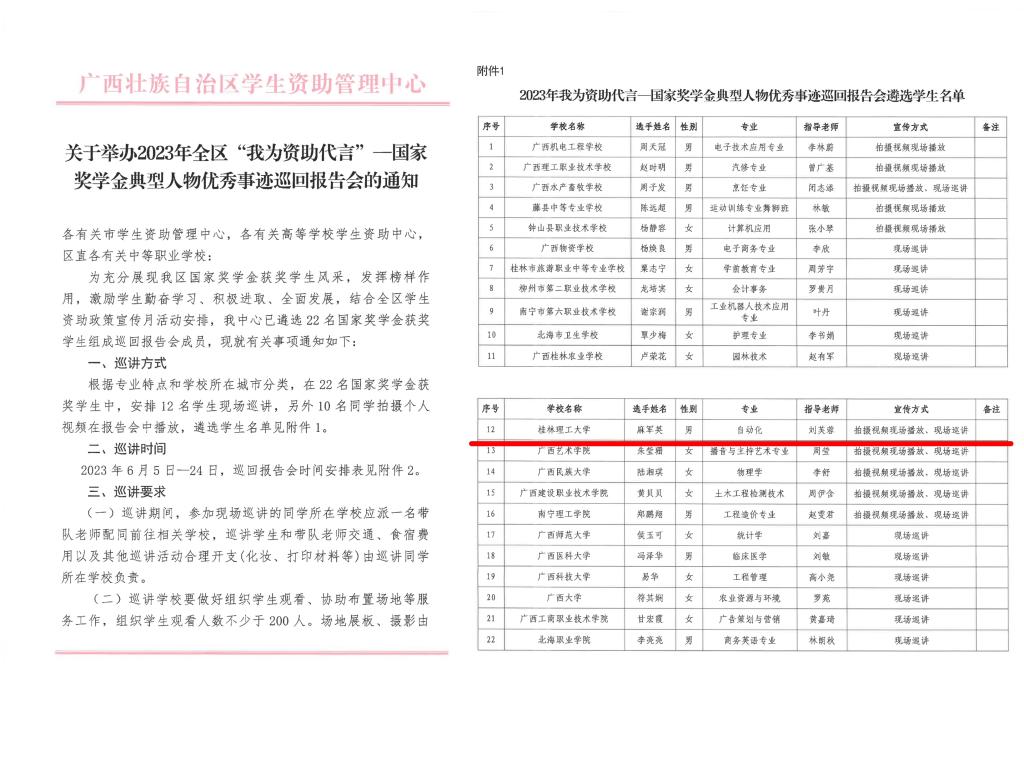 麻军英同学入选全区“我为资助代言”——国家奖学金典型人物优秀事迹巡回报告会宣讲团