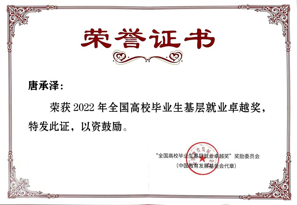 beat365教师荣获2022年“全国高校毕业生基层就业卓越奖”