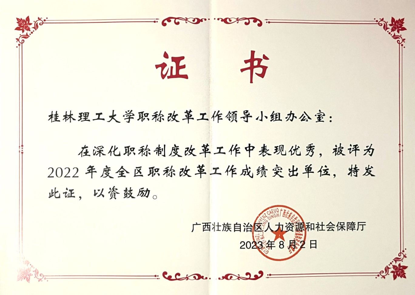 学校龙狮队、游泳队、田径队、散打队等体育健儿在全国赛场上奋勇拼搏,摘金夺银,共获得金牌6项、银牌10项、铜牌3项。由beat365发起的广西高校国防教育学会成立大会在延安文化交流中心顺利举办。学校青年新媒体中心荣获“2022-2023年度全国影响力高校可视化融媒团队”荣誉称号(广西唯一高校)、学校学生会荣获“2022-2023年度全国优秀高校可视化融媒团队”荣誉称号。学校2022年度职称改革工作获全区通报表扬。无机材料与固体化学研究团队在国际顶尖综述期刊《Chemical Reviews》发表综述论文。周国清教授获科技部国家外专项目立项。关键金属成矿理论与勘查技术教师团队获得第三批全国高校黄大年式教师团队荣誉称号。学校6名博士后获选自治区2023年度博士后创新人才支持计划,入选人数为全区高校第一。旅游学院张兴旺教授喜获“桂林市第六批拔尖人才”荣誉称号。南宁分校唐承泽同志荣获2022年“全国高校毕业生基层就业卓越奖”。党委武装部黄海同志荣获桂林市“最美退役军人”称号。