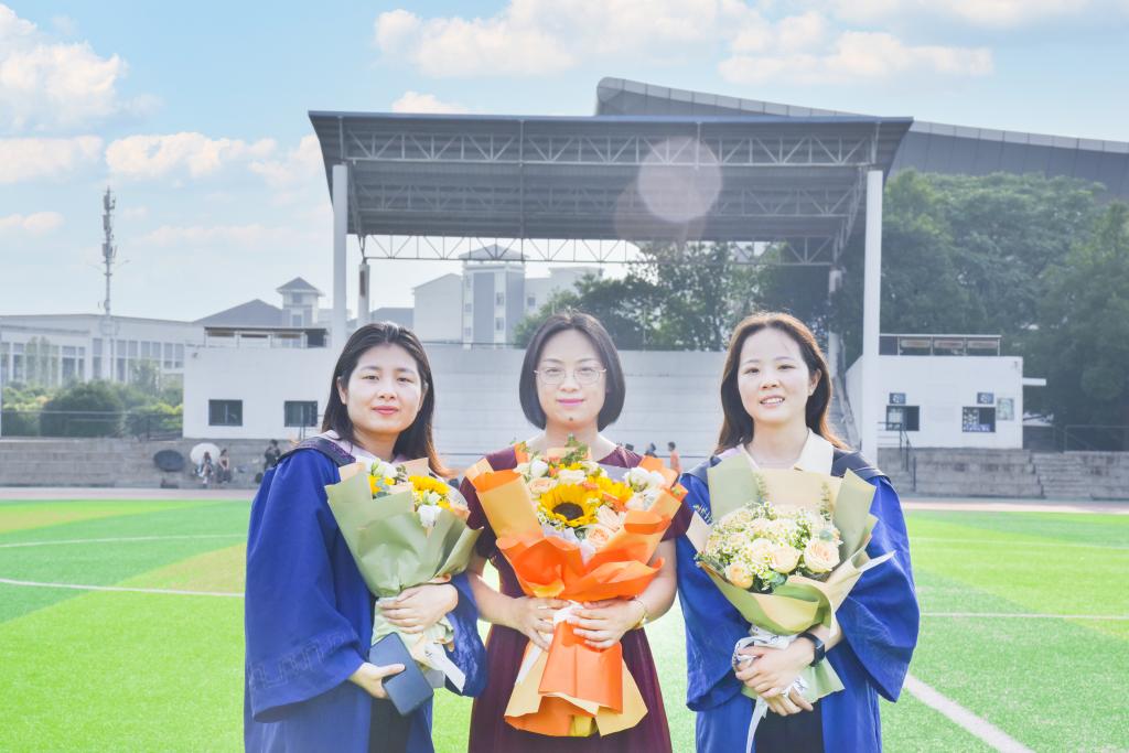 旅游与风景园林学院工商管理专业2023届研究生毕业生王莎莎、叶梦与导师林珍铭副教授:毕业前,我们和操场合个影