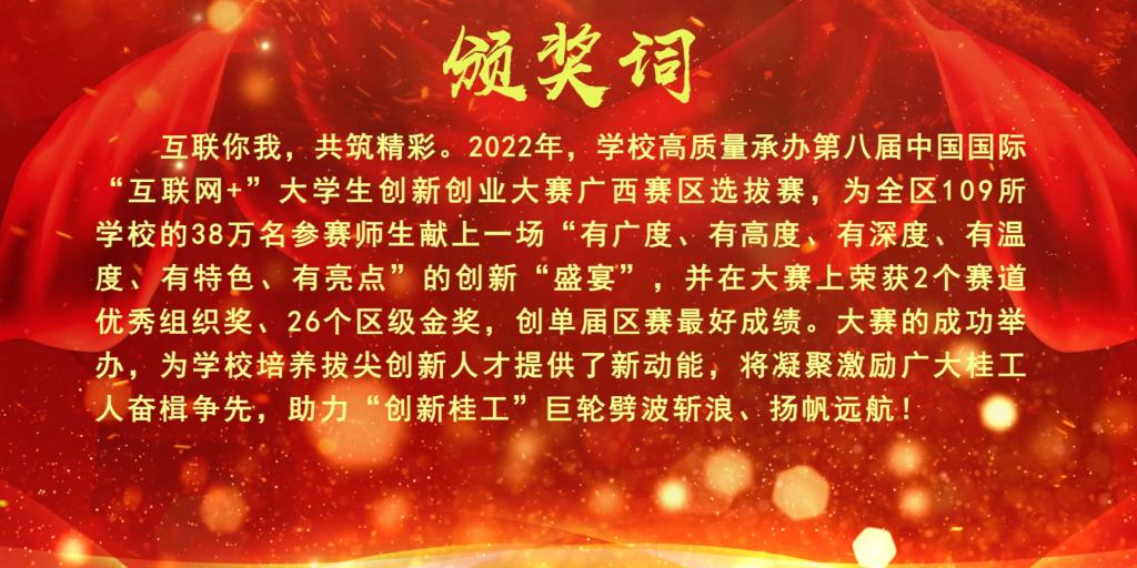 组委会给予“学校承办第八届中国国际‘互联网+’大学生创新创业大赛广西赛区选拔赛并取得优异成绩”的颁奖词