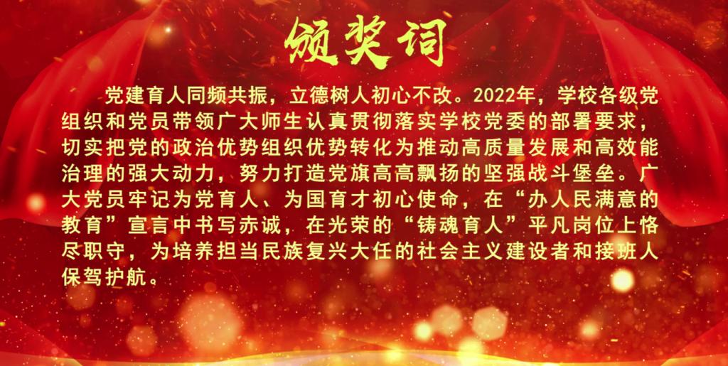 组委会给予“学校党建引领育人工作成效显著”的颁奖词