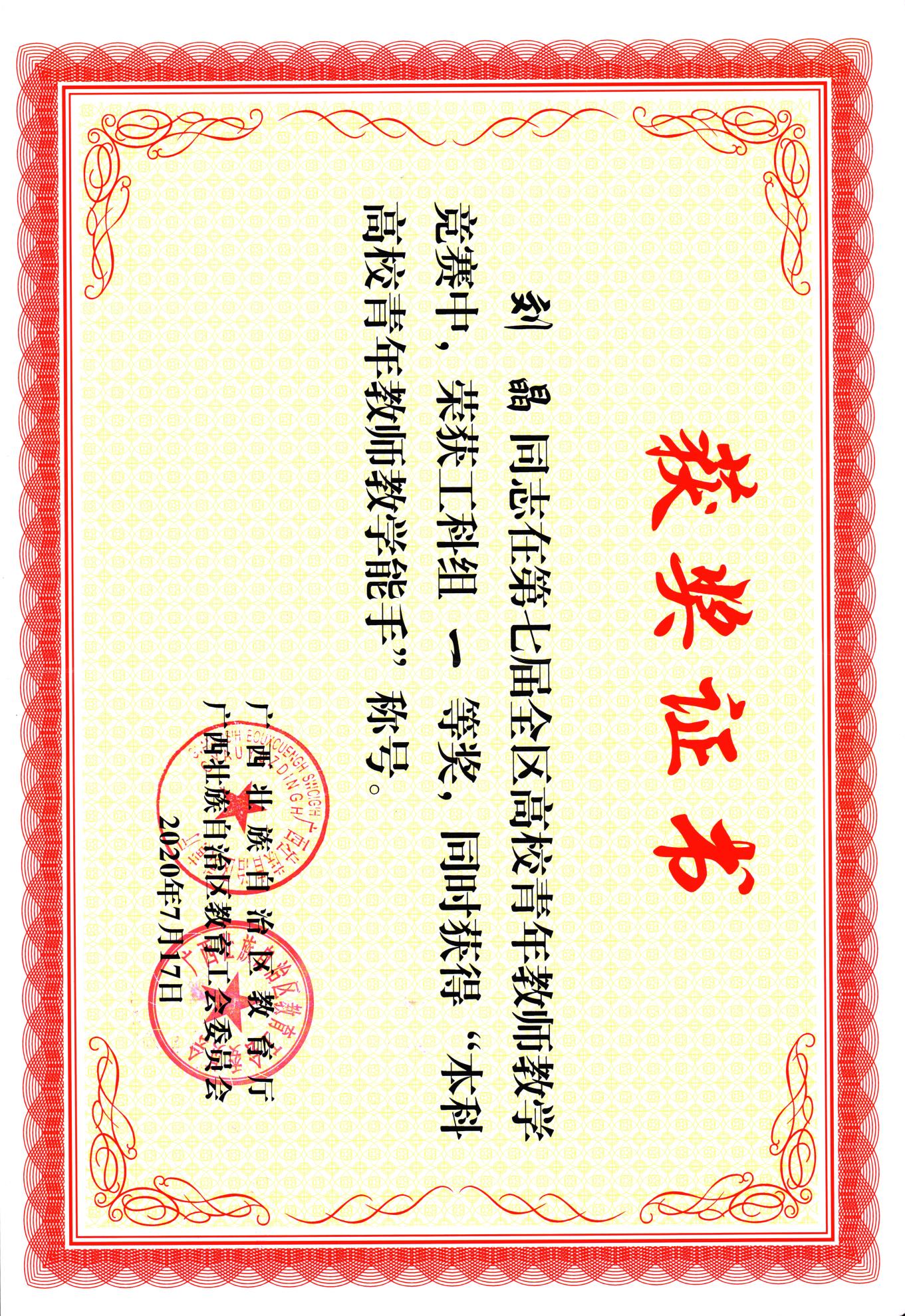 获自治区教学成果一等奖