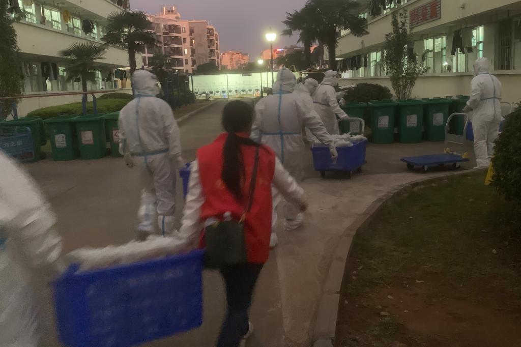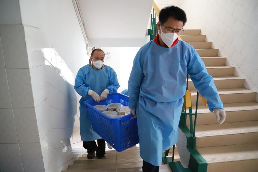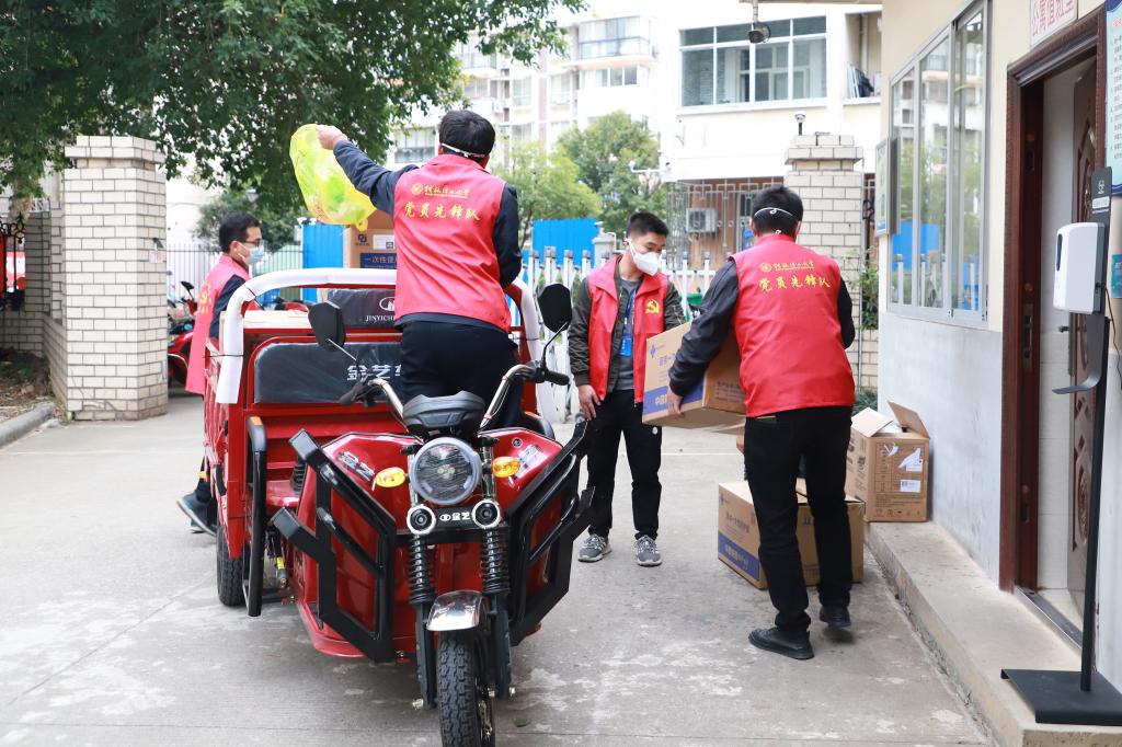 “晚餐打包转运还需要临时加派人手”“今晚物资到学校,请有时间的志愿者晚上22:00到图书馆附楼集合搬运物资”。面对师生日常生活物资、学生宿舍用餐派送需求,一群党员、教师志愿者站了出来,科研人员、教辅人员、专职辅导员、后勤工人等同时化身“红马甲”“红袖章”。从制作到打包,从转运到上楼,近百名志愿者分片包干、任务到人,十几辆电动三轮车穿梭在食堂和宿舍楼之间,承担起了家属社区、学生楼栋物资配送、用餐分发等大量工作,每天一日三餐重复完成装餐、打包、搬运、上楼、分发等动作,组成了校园物资配送的一道特殊流水线,每天高效完成7000余名师生“无接触”配送上门任务。