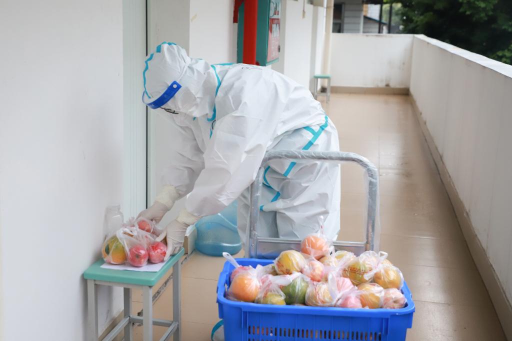 民生无小事,枝叶总关情。面对复杂的疫情防控形势,师生群众的生活如何保障?学校始终全力做好校园生活服务保障,尽最大努力为师生群众提供方便。“老师,每次在我们有需要的时候,你们总是第一时间出现,有你们在,我们感觉特别踏实,谢谢你们”。走进学生宿舍,可以看到同学们有序地在上网课,映入眼帘的还有学校为大家精心准备的盒饭、辣椒酱和一份份精心搭配、新鲜健康的爱心水果包。疫情期间,学校始终牵挂着每一位同学,线上教学、生活保障、急办专线、心理辅导等多个“暖心服务”同步上线,每个楼栋安排专门志愿者负责回应关切学生学习、生活需求,全力为同学们的安全生活、健康成长保驾护航。