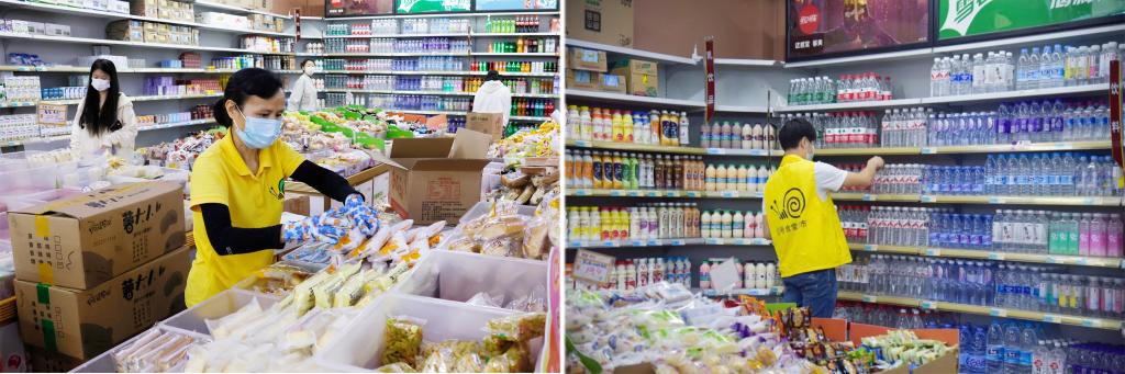 桂林市疫情形势变化前,学校勤工助学服务公司提前预判,抓紧时间购入了大批纸巾用品、日化用品、女性用品、饮用水等生活物资、保供用品,同时严格把控物资采购渠道,积极与供货商保持密切联系,确保货品充足、物资在店、人员在岗、服务在线。走进雁山校区几家勤工助学超市,货架上各类商品琳琅满目、陈列齐全,特价促销商品、超级福利水果应接不暇,踏实感与安心感扑面而来。