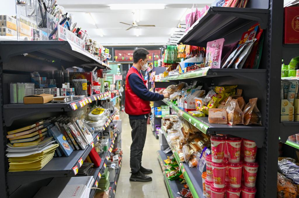 学工干部志愿者在整理货架