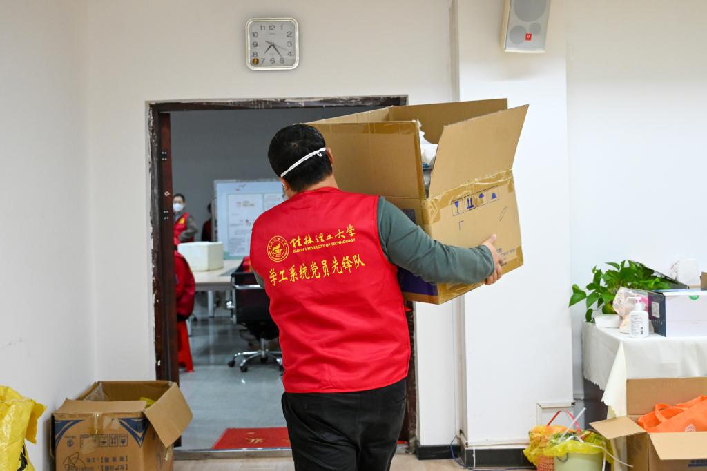本轮桂林疫情发生后,面对严峻复杂的防控形势和全员在校的学生实际,学工系统认真贯彻落实上级部门关于疫情防控工作的决策部署,严守阵地、履职尽责,切实做到了守土有责、守土担责、守土尽责,以实际行动践行初心使命。扫码引导、发放检测拭子、分拣物资、打包饭盒、搬运物资、校园巡逻……连日来,学工队伍凝聚合力、共克时艰,坚持一线作战、冲锋在前,用心用情、织牢织密校园疫情防控网,奋力展现学工队伍的使命担当,为学校疫情防控工作作出一份应有的贡献。