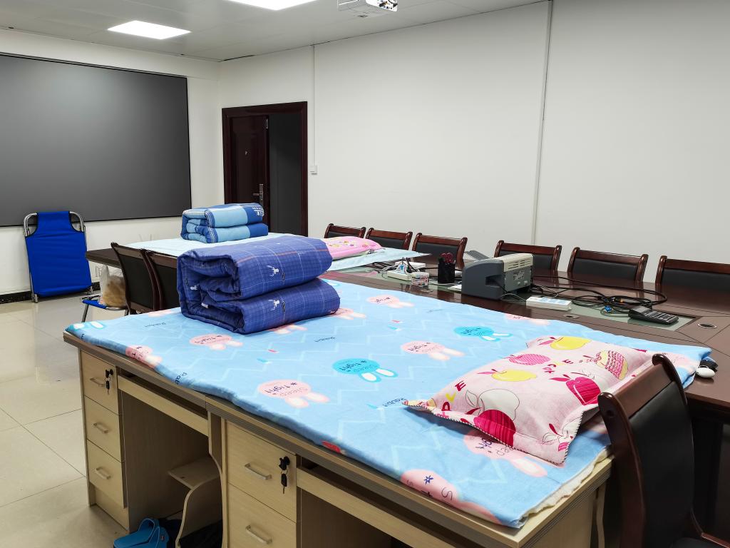 辅导员在办公室临时搭建床铺