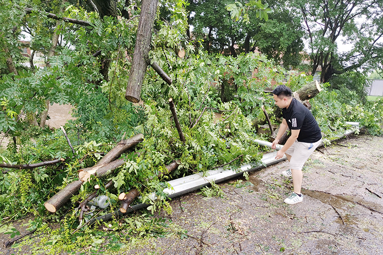学校派驻永富村驻村第一书记慕宗良疏通因灾受阻村主干道现场