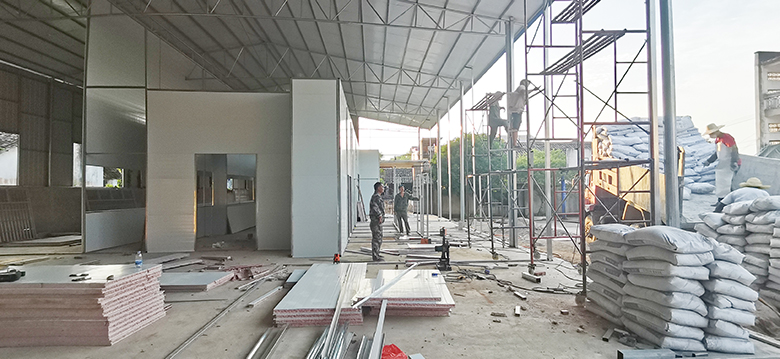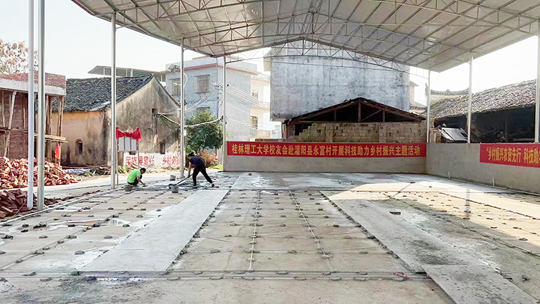 永富村果脯蜜饯蔬菜干深加工项目地面找平和打磨现场