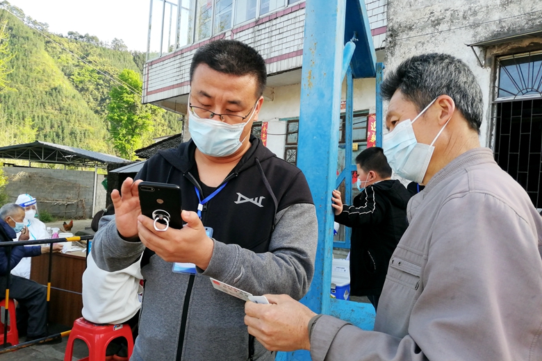 顺溪村第一书记单江涛帮助没有智能机的老年人申请二维码