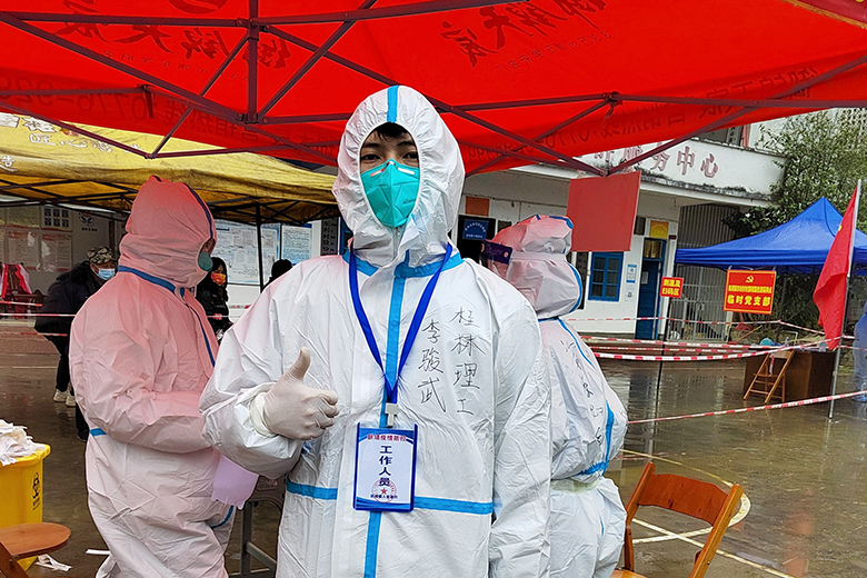 点点萤火成银河,许许星火援百色。2月5日百色疫情突发,百色市委、市政府迅速下达文件,要求封城并开展全员核酸检测,情况紧急,任务艰巨,土木建筑与工程学院的李骏武同学第一时间投身家乡疫情防控工作,在百色靖西新靖镇东利村村部做志愿服务,每天早起到村部报道、给医护人员喷酒精消毒、运送物资、布置场地、维护核酸检测现场秩序……提到志愿服务的过程,李骏武同学说道:“刚开始时物资紧缺,志愿者们都把防护服让出来给医护人员;在维持现场秩序时,志愿者把嗓子喊哑了;有时碰到阴雨寒冷的天气,衣服鞋子都湿透了,手指头冻僵了......投身志愿,新青年无怨无悔,只愿早日战胜疫情。”新时代新青年有理想有担当,国家就有前途,民族就有希望。李骏武同学说,在这场疫情防控阻击战中,他只是众多抗击疫情中志愿者的一个小小缩影,还有千千万万的志愿者用朴实的行动、真诚的服务为防疫作出了贡献。