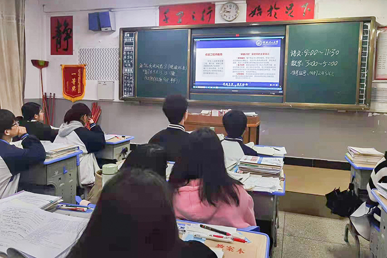 王力中学高三学生在观看beat365官方网站的宣传PPT