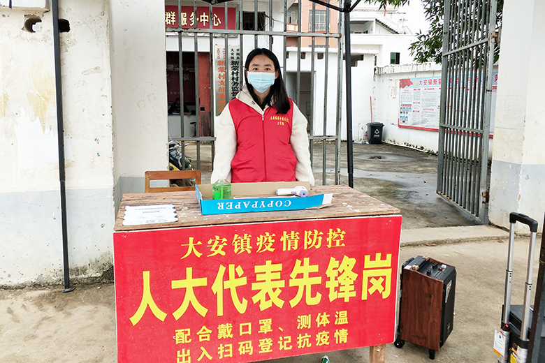 在这个寒假,外国语学院英语2021-1班的蒙泳清同学参与了家乡贵港市平南县大安镇新蒙村社区组织的“防疫常态化,青年在行动”志愿服务实践活动。在这次实践活动中,她在社区服务中心协助社区工作人员,进行来访及回乡人员登记、测量体温、健康码核查、登记外来人员信息和核查核酸检测等工作。在志愿服务过程中,有不少居民对社区服务中心的工作给予了肯定和赞扬,有的居民还为志愿者们送来了矿泉水和食物等物资,她感受到了家乡村民的热情。通过这次志愿服务活动,她体验到了为社会奉献自我的快乐,也让她对志愿服务有了更深的认识,她说:“青年积极投身于服务社会、服务群众,帮助需要帮助的人,做奉献爱心的事,这就是做一名志愿者的意义。”