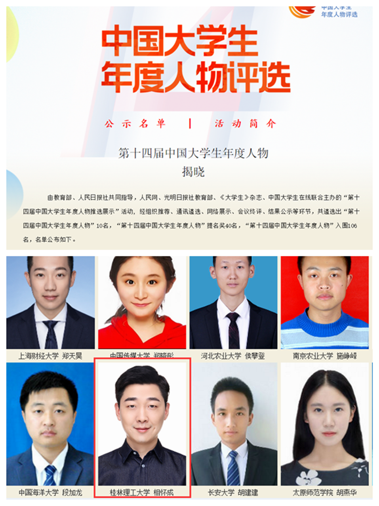支部党员入选“第十四届中国大学生年度人物评选”活动年度人物入围候选人