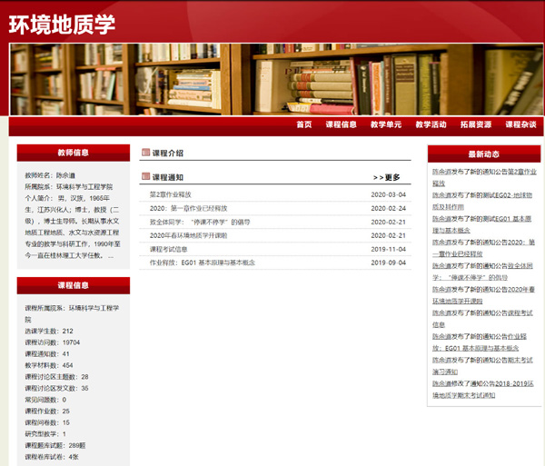 受新冠肺炎疫情影响,2月24日学校启动了大规模的线上教学。环境科学与工程学院地下水科学与工程专业教学团队除了承担本专业的专业课程教学任务外,还承担着一部分其他专业的基础课程,在2020年春季学期的前3周,该团队便有5门课程需要开展线上教学。面对突发情况,在专业负责人、广西教学名师陈余道教授的带领下,团队成员充分利用已有资源,积极探索线上教学模式,保障课程教学质量。