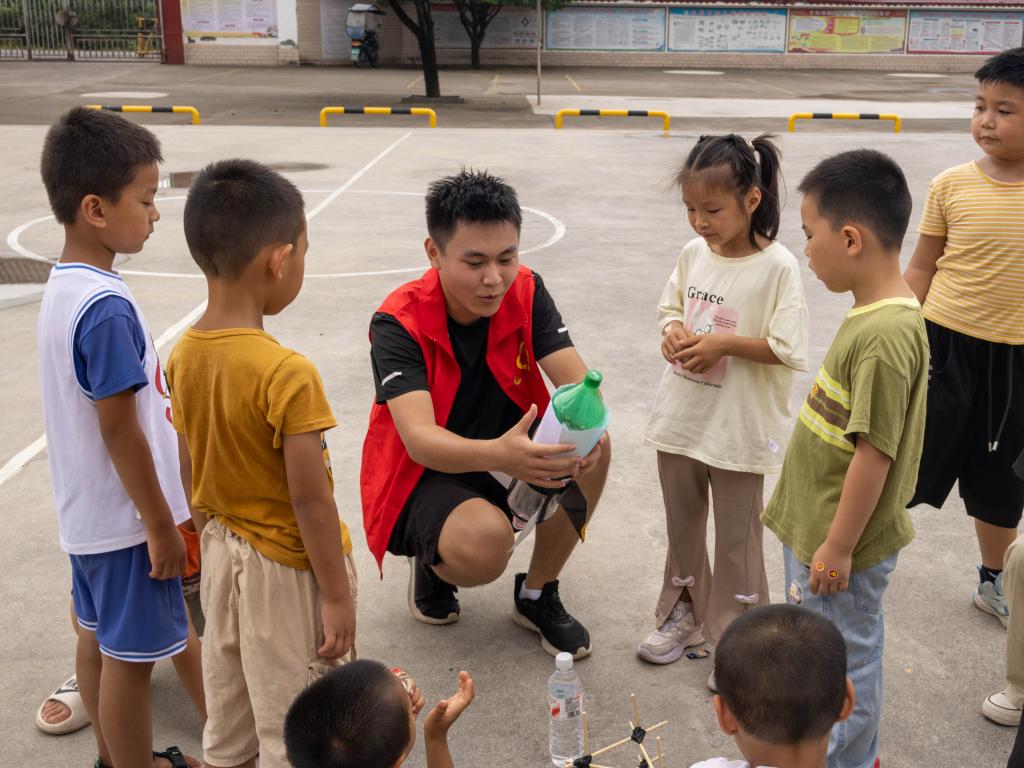 地质科普课堂,成员们手持岩石标本耐心讲解,孩子们眼中闪烁着探索地球奥秘的光芒;版图复原游戏,省份拼图滑动于指尖,国家版图意识刻骨铭心,爱国情愫悄然扎根;物理科学实验,水火箭带着梦想升空,科学知识的种子无声播撒;安全教育现场,情景模拟与互动问答交替进行,自护意识深入人心;书信活动桌前,孩子们心声流露,字里行间流淌着纯粹的情感。这不仅仅是一场普通的支教活动,更是一次发挥地质学科优势为乡村教育注入活力的深度实践。他们系统设计课程体系,创新教育传播方式,精准对接乡村学生在科学认知、安全防护与情感表达上的需求。