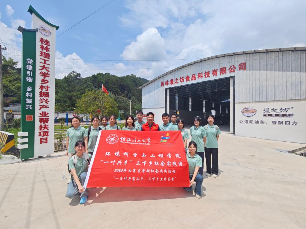 暑假期间,环境科学与工程学院“一叶兴乡”乡村振兴社会实践团深入桂林灌阳县、贺州昭平县、梧州六堡镇等地走进田野茶山,深入调研茶产业赋能乡村振兴的路径。从灌阳县顺溪村的油茶工坊,到昭平县的生态茶园,再到苍梧县四柳村的六堡茶非遗技艺合作社,实践团紧扣乡村振兴的脉搏,踏上了一场绿色与文化交融的实践之旅。