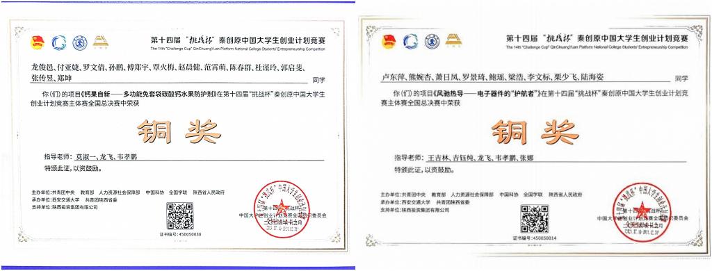 团队成员龙飞、王吉林教授指导学生参加中国大学生创业计划竞赛获国家级铜奖